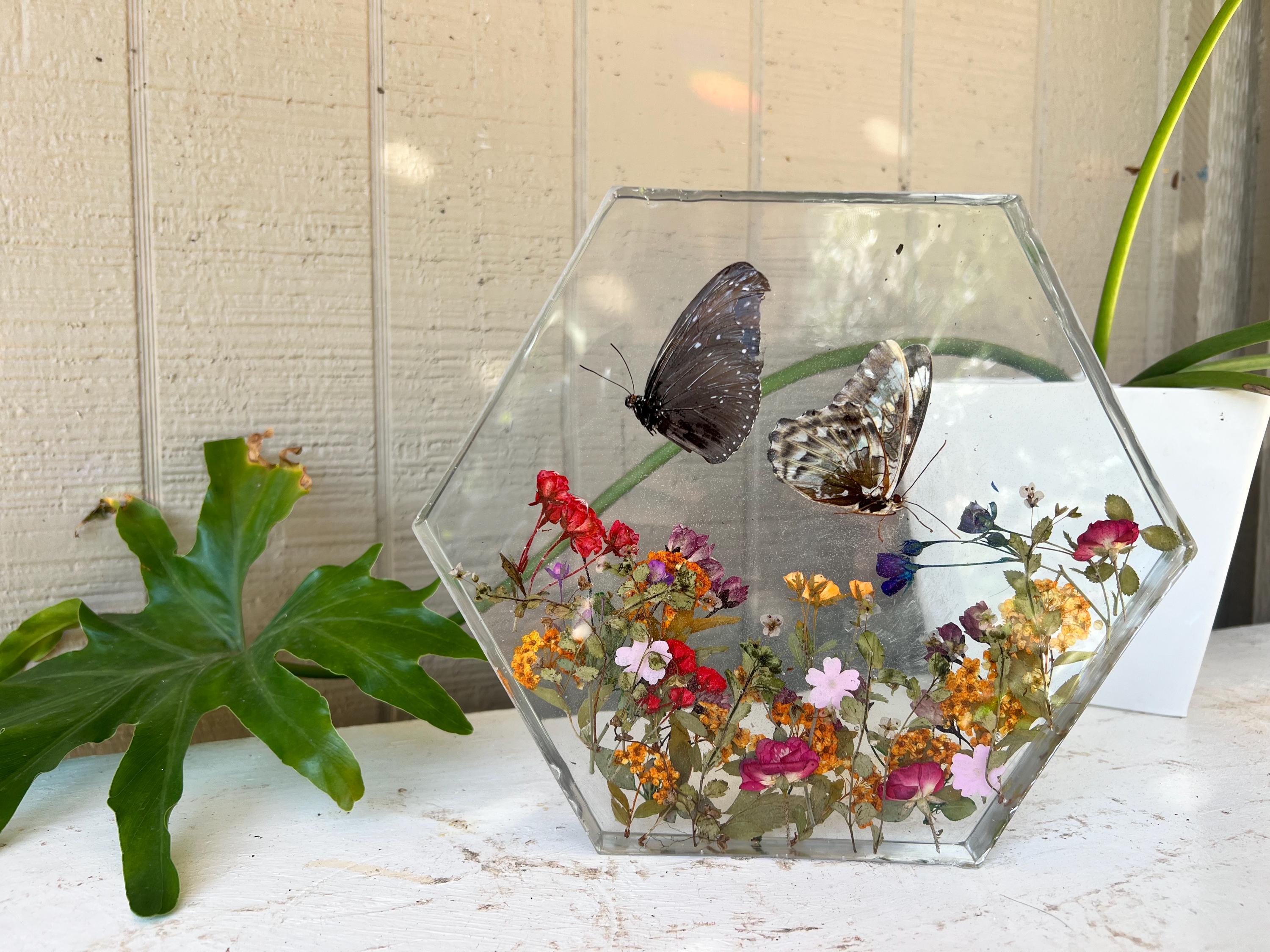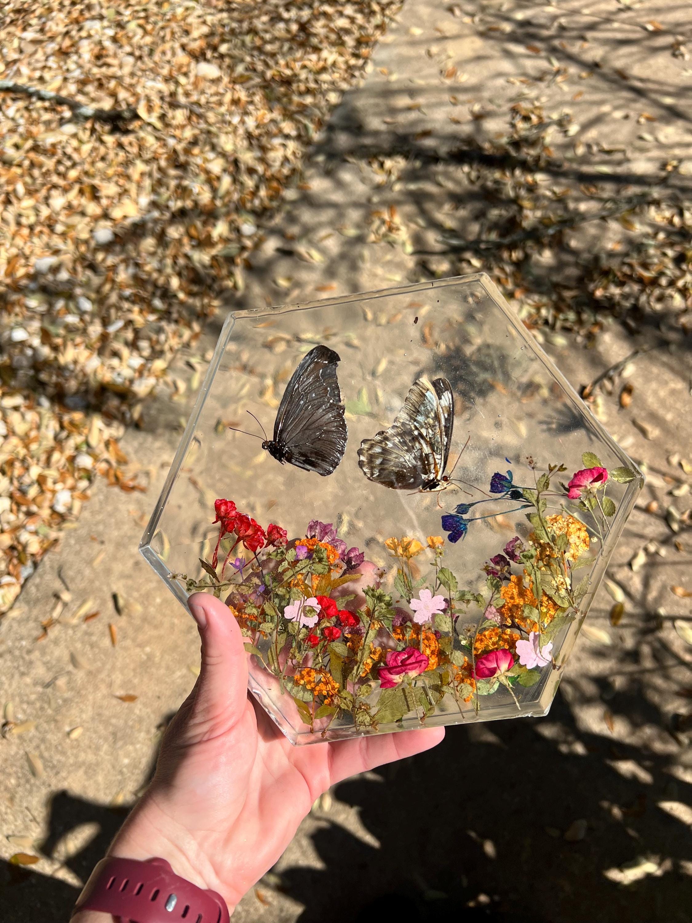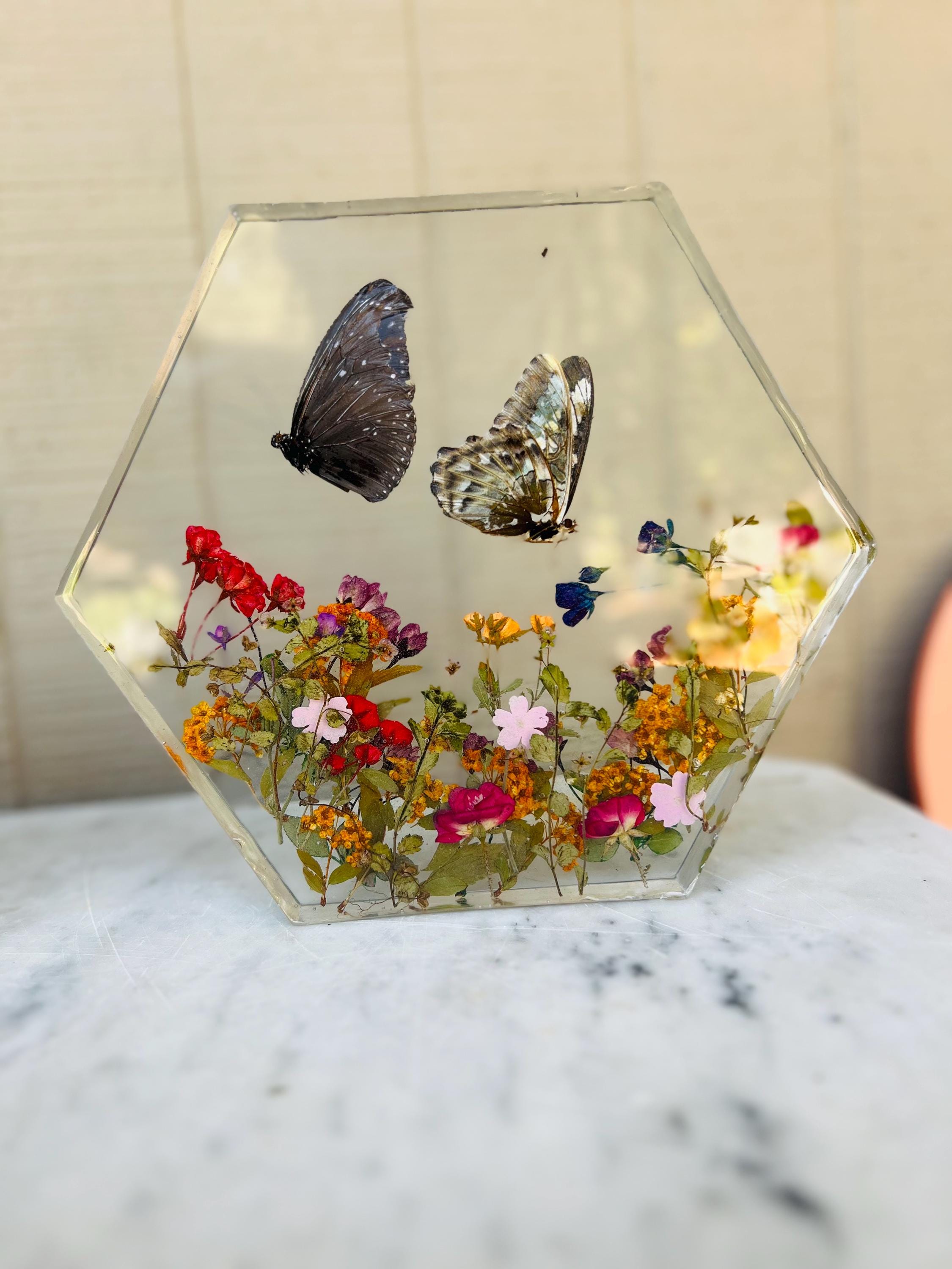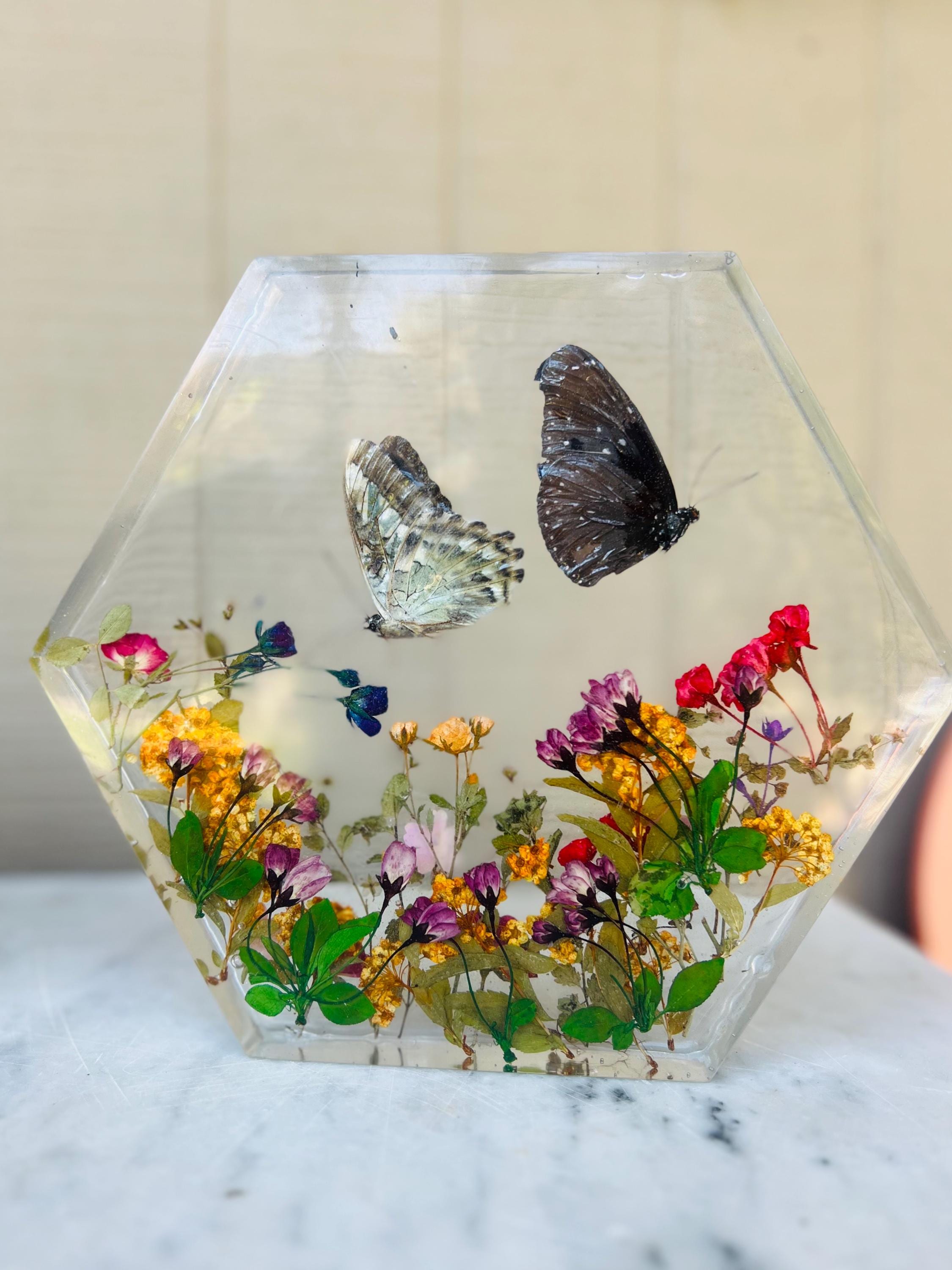 This resin butterfly display adds a touch of natural beauty to any home, office, or studio. It also makes a thoughtful gift for: