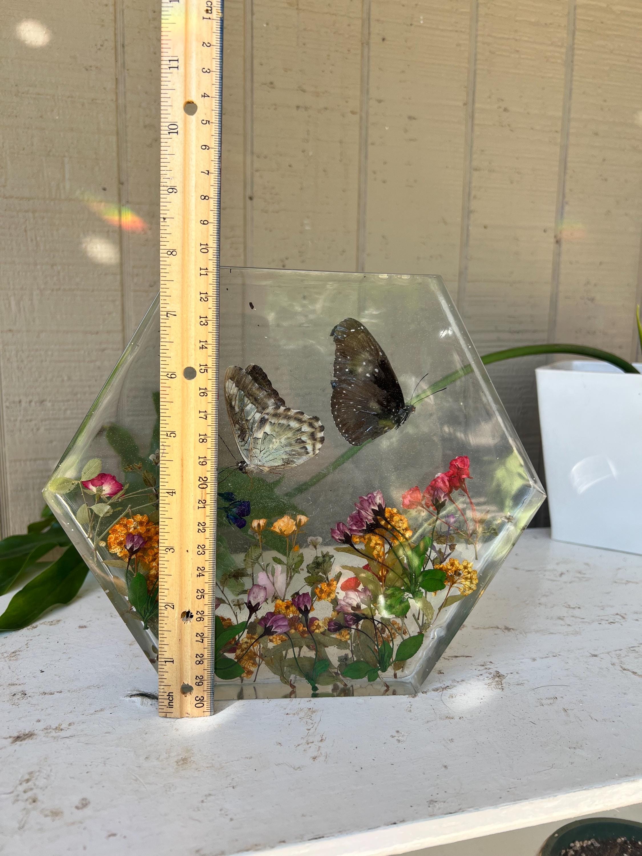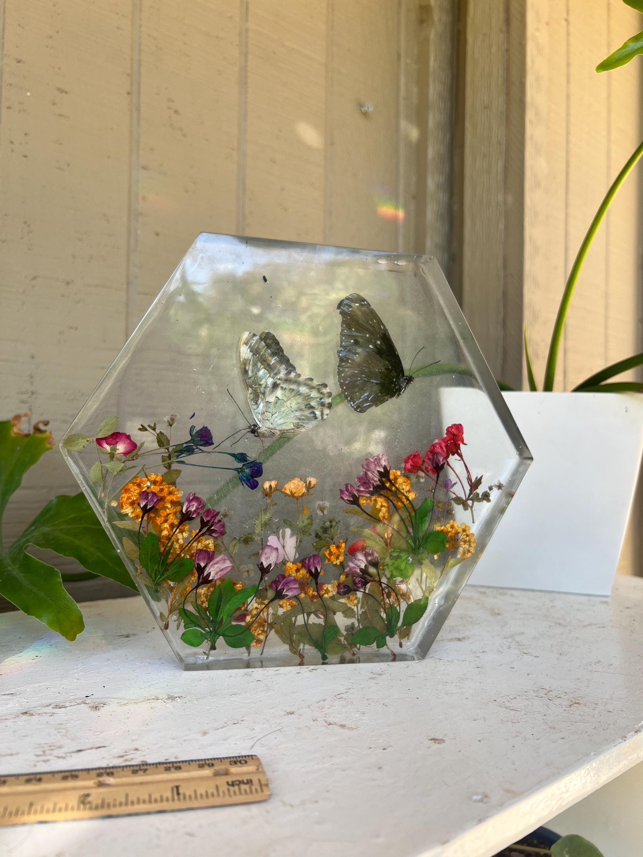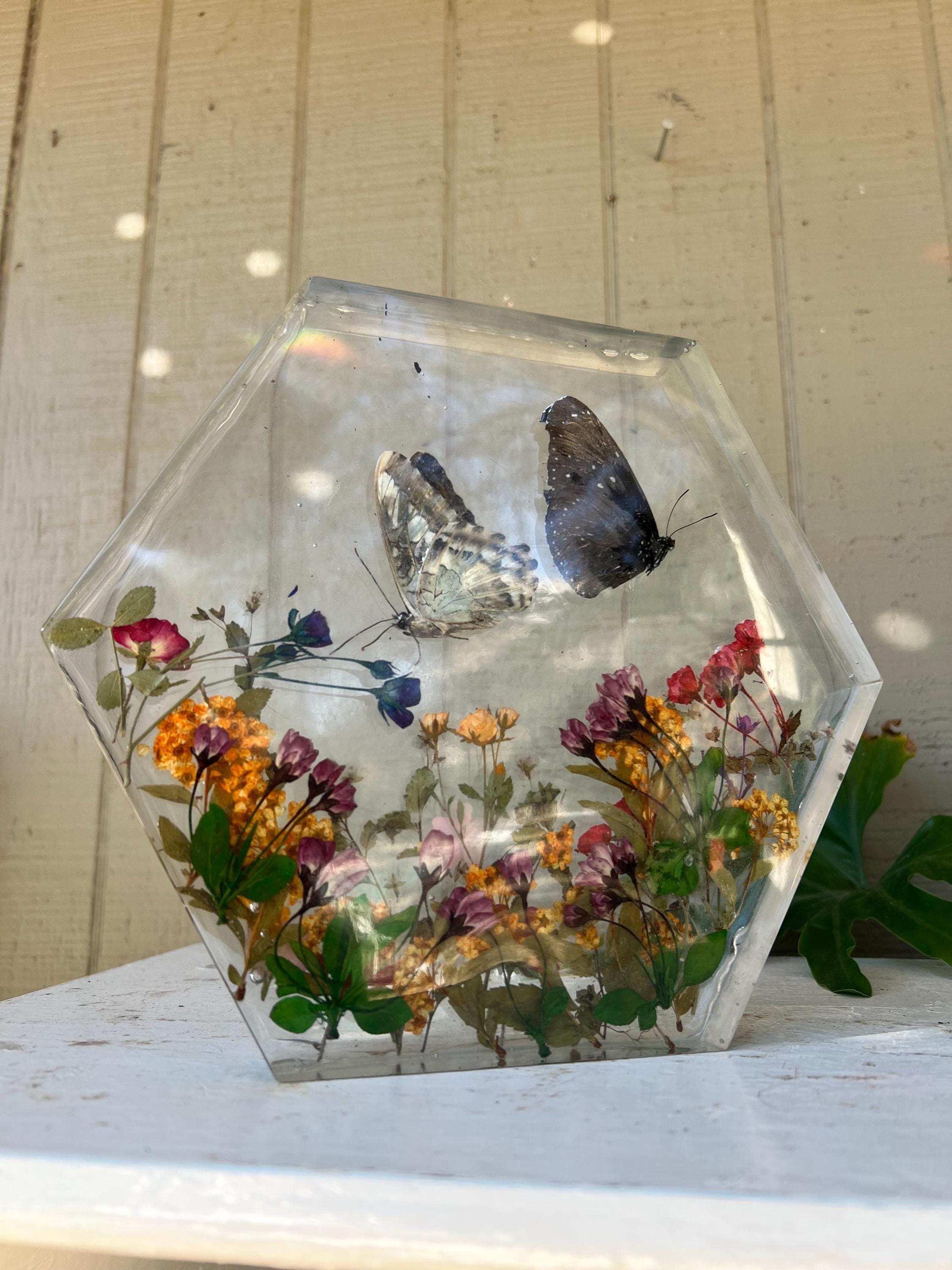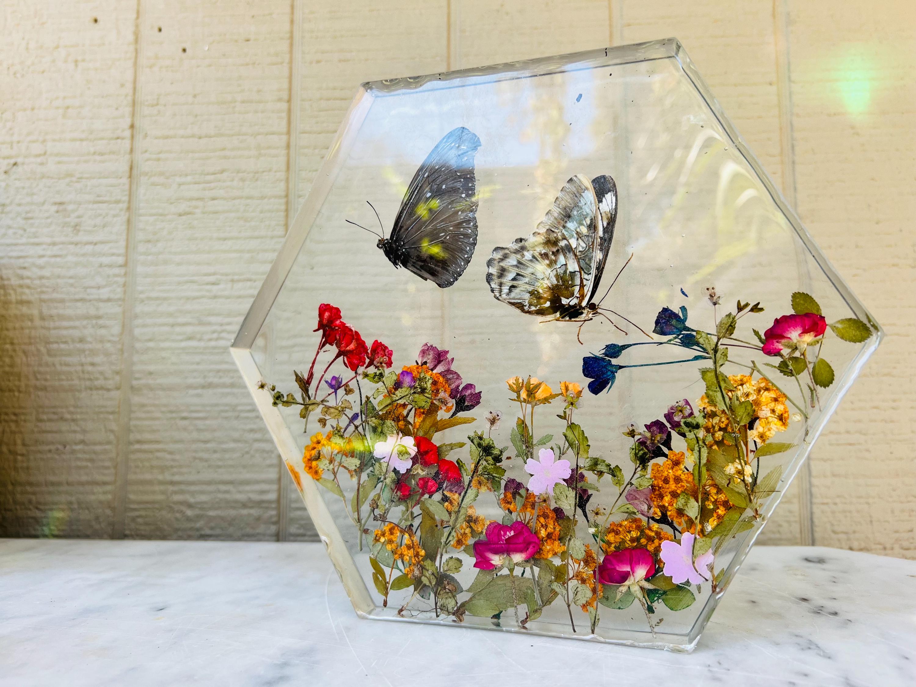 This resin butterfly display adds a touch of natural beauty to any home, office, or studio. It also makes a thoughtful gift for: